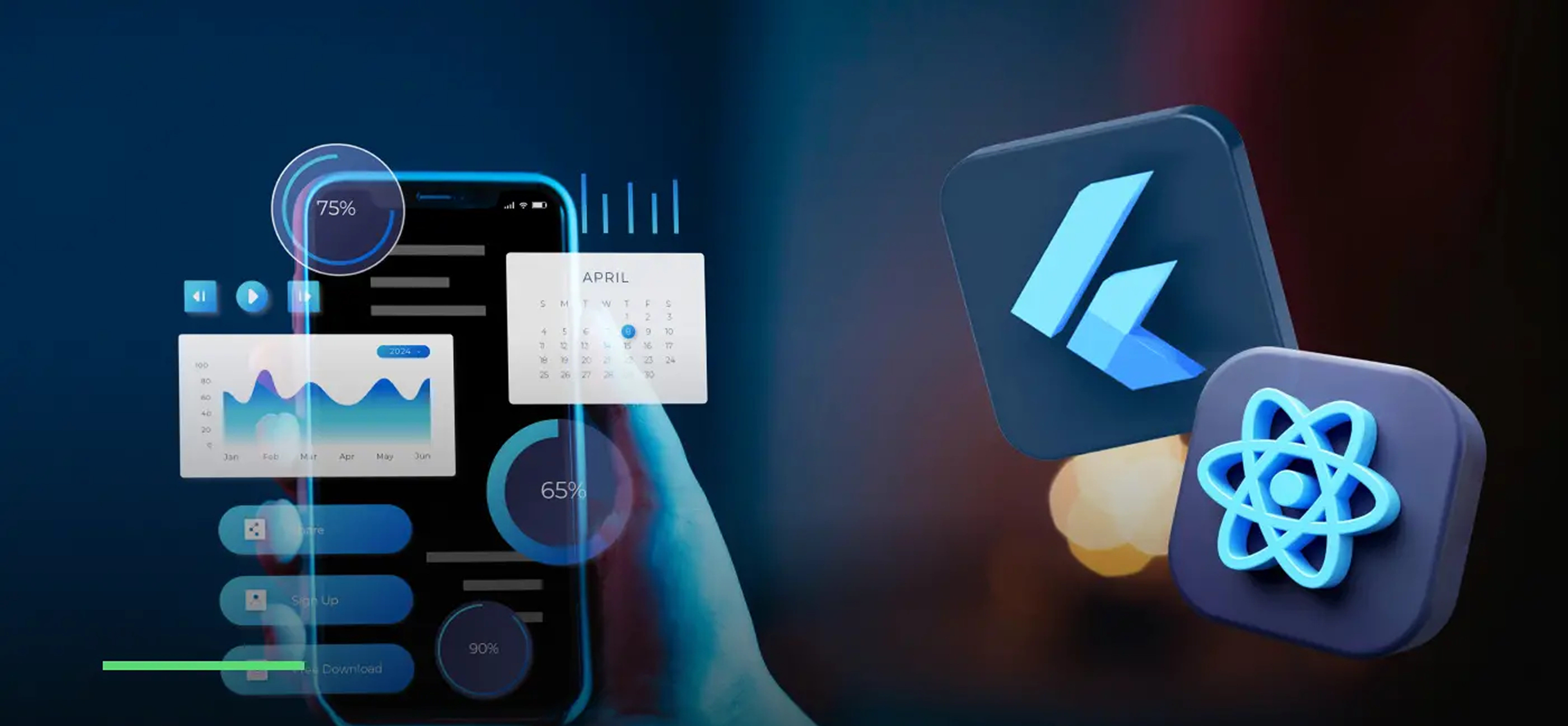 تصميم وبرمجة تطبيقات جوال مخصصة لتجربة مستخدم سلسة وفعالة على جميع الأجهزة.